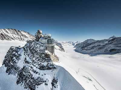 The Top of Europe (highest rail station in Europe) – the land of eternal snow and ice with spectacular views over the Alps and the impressive Aletsch Glacier, as well as ice sculptures in the Ice Palace within the Glacier.
